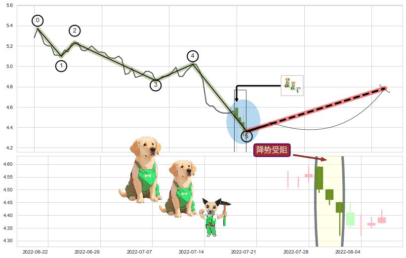 ➣ 预测:2022-10-18,【继续下探】稳定目前下跌趋势的前提下,预测价格:4.18