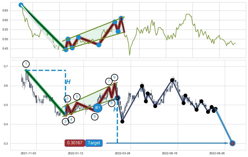 ➣ 最小中继整理跌幅→𝐇: 0.235000 (𝐇旗杆的长度:旗杆起点→顶点)