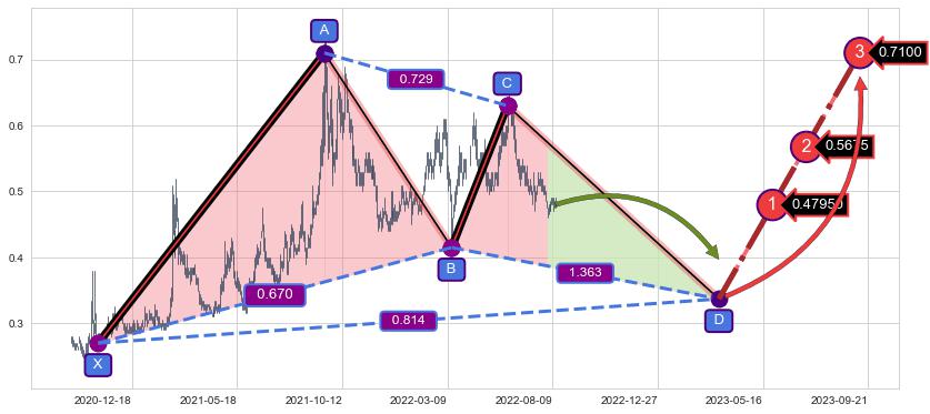 ➣ 未完成【伽利】形态起点X: 2020-11-04, 已到达C点: 2022-06-08, 预测最终D点: 2023-03-17, 共583交易日