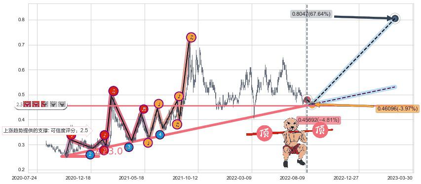 ➣ D点拟合预测价格0.33703,距离最后交易收盘价格0.48000相差 -29.79%
