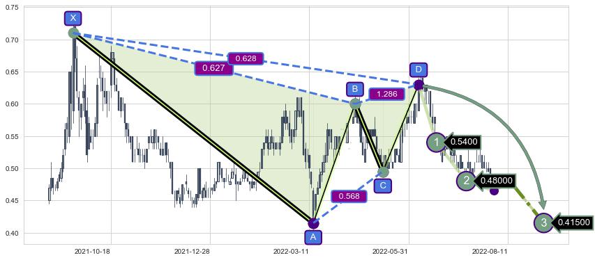 ➣ D点拟合预测价格0.41157,距离最后交易收盘价格0.48000相差 -14.26%