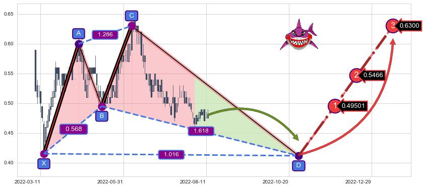 ➣ 未完成【鲨鱼】形态起点X: 2022-03-15, 已到达C点: 2022-06-08, 预测最终D点: 2022-10-28, 共147交易日