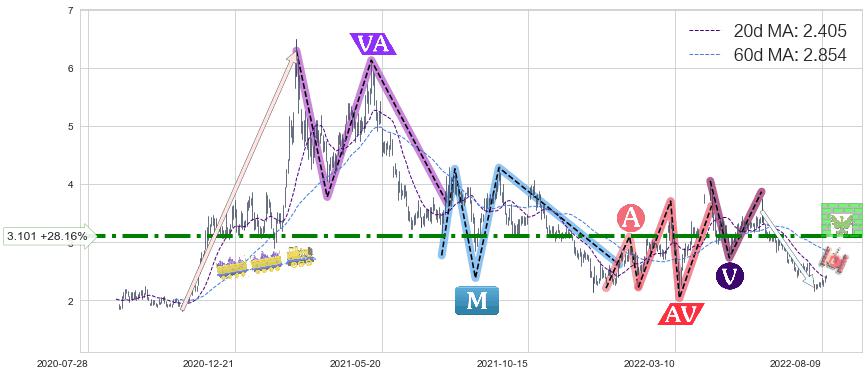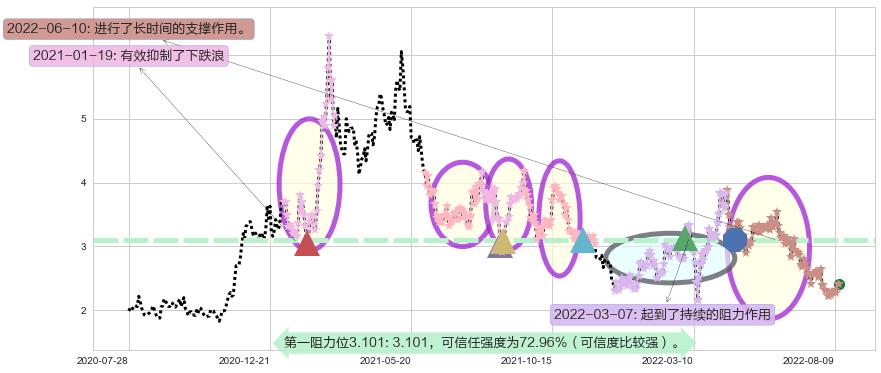 ♘ 阻力价格位3.101,可信任强度72.96%,距离最后交易2022-08-12形成的收盘价格2.420相差 +28.16%