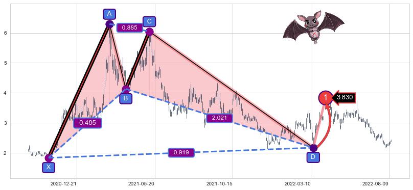 ➣ 已完成【蝙蝠】形态起点X: 2020-10-30, 终点D: 2022-03-15, 共340交易日