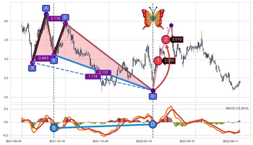 ➣ 已完成【蝴蝶】形态起点X: 2021-08-20, 终点D: 2022-03-15, 共140交易日