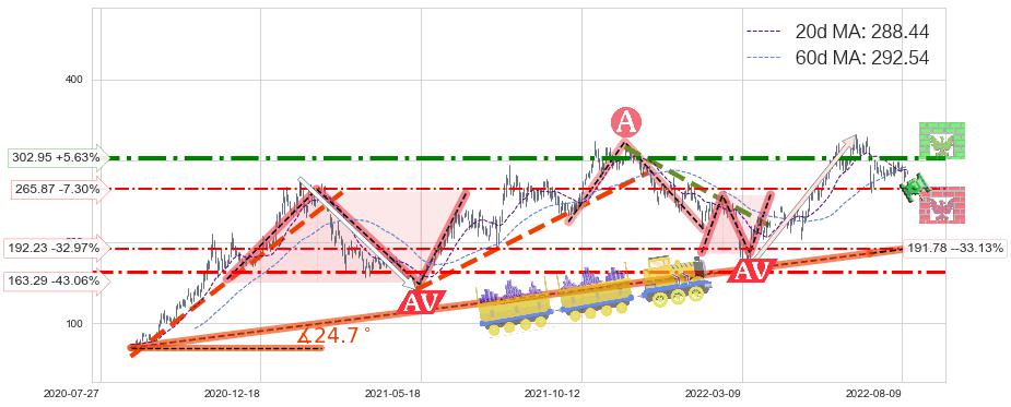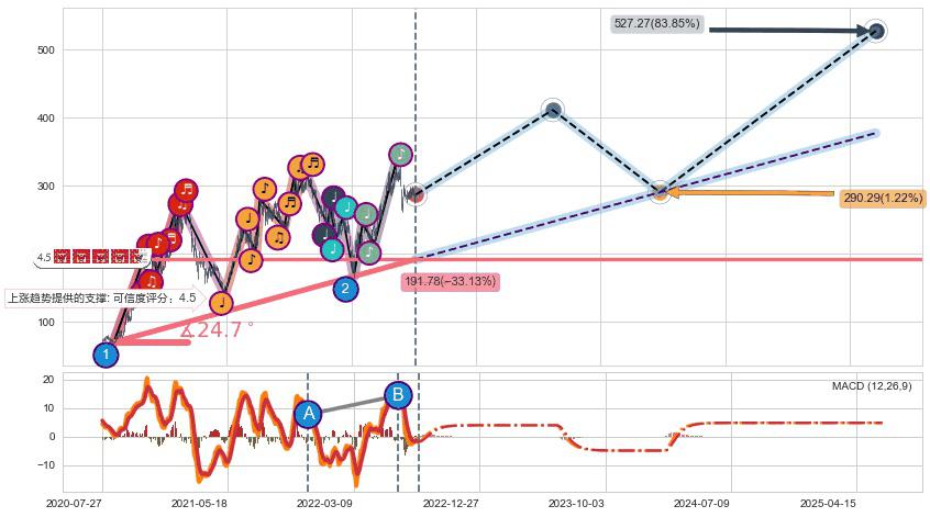 ♘ 阻力价格位302.95,可信任强度78.44%,距离最后交易2022-08-12形成的收盘价格286.80相差 +5.63%