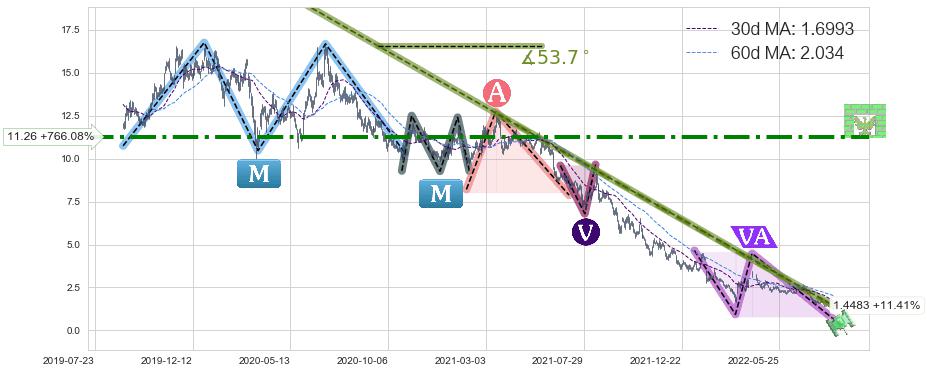 ♘ 阻力价格位11.26,可信任强度74.91%,距离最后交易2022-08-12形成的收盘价格1.3000相差 +766.08%