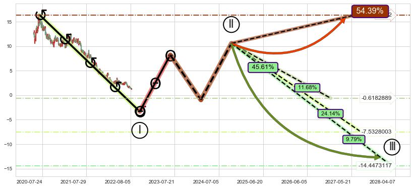 ➢ 循环浪继续向下【最低】位置(2028-04-07, -14.4473117),匹配聚类样本比例21.47%, 可能性概率9.79%