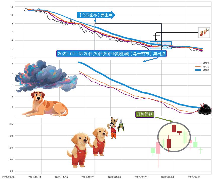 | 2 🅚:乌云盖顶 ➕ 🎢:【乌云密布】卖出点均线组合卖出点信号形成后,猜想后续下行持续,下跌加速(趋势跟踪) ☞ 看空信号 ⇥ 【均线】交织【🅚线】⇥ 综合量化分数: 49 | > |