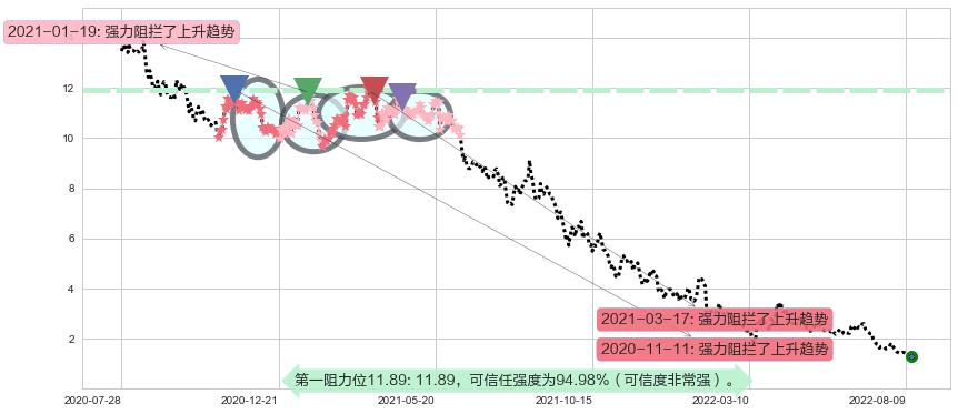 ♘ 阻力价格位11.89,可信任强度94.98%,距离最后交易2022-08-12形成的收盘价格1.3000相差 +814.96%