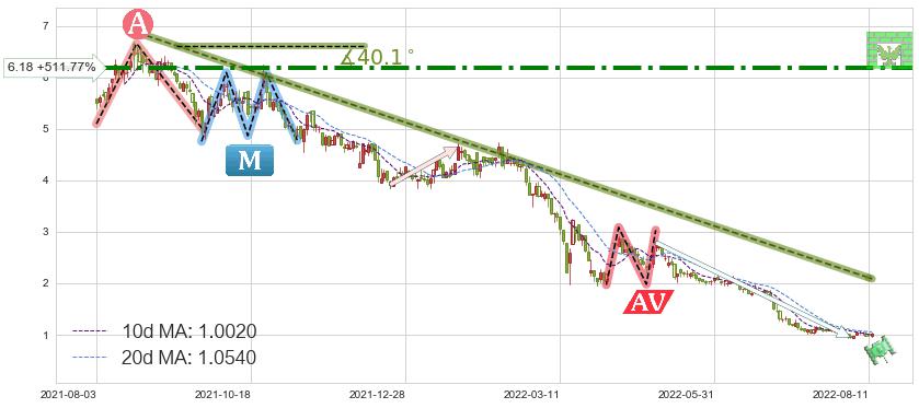 ♘ 阻力价格位6.18,可信任强度76.39%,距离最后交易2022-08-12形成的收盘价格1.0100相差 +511.77%