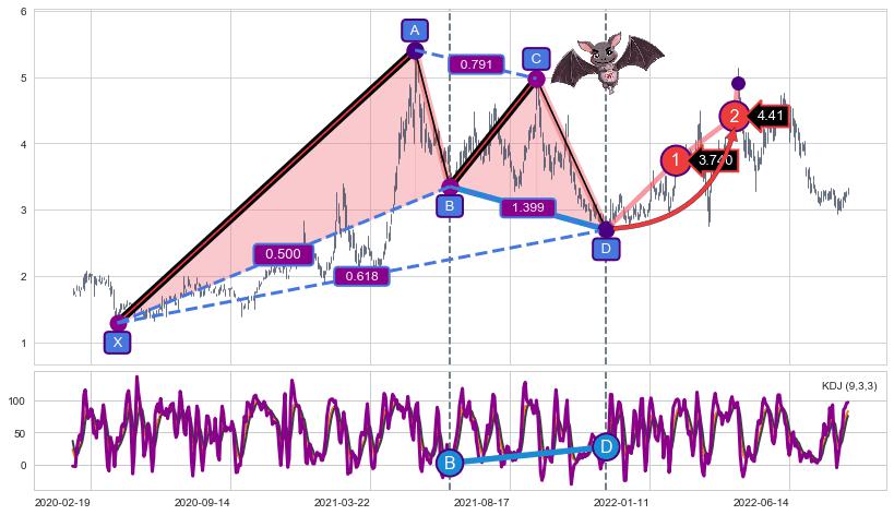 ➣ 已完成【蝙蝠】形态起点X: 2020-03-23, 终点D: 2021-11-26, 共351交易日