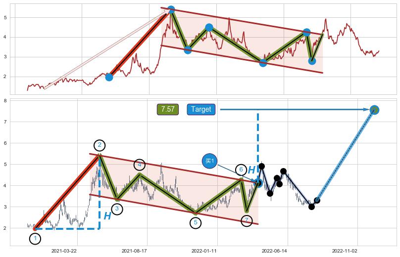 ➣ 最小中继整理涨幅→𝐇: 3.450 (𝐇旗杆的长度:旗杆起点→顶点)