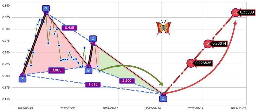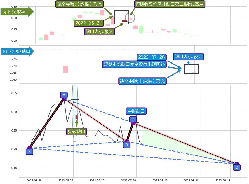 ➣ 未完成【蝴蝶】形态起点X: 2022-03-15, 已到达C点: 2022-07-25, 预测最终D点: 2022-09-15, 共67交易日