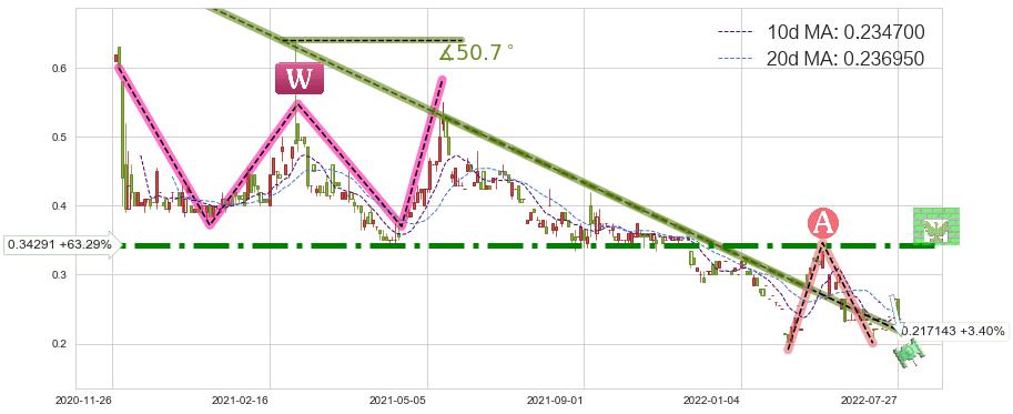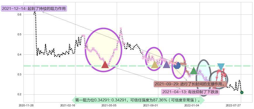 ♘ 阻力价格位0.34291,可信任强度87.36%,距离最后交易2022-08-04形成的收盘价格0.210000相差 +63.29%