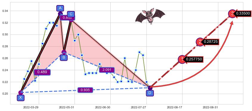 ➣ 已完成【蝙蝠】形态起点X: 2022-03-15, 终点D: 2022-08-04, 共37交易日
