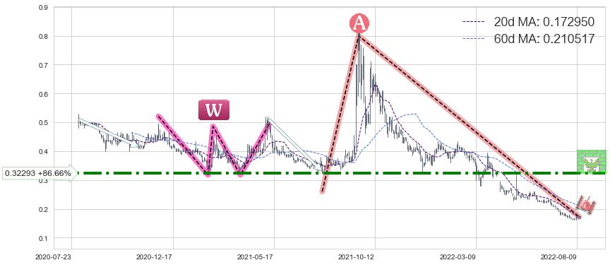 ♘ 阻力价格位0.32293,可信任强度83.87%,距离最后交易2022-08-12形成的收盘价格0.173000相差 +86.66%