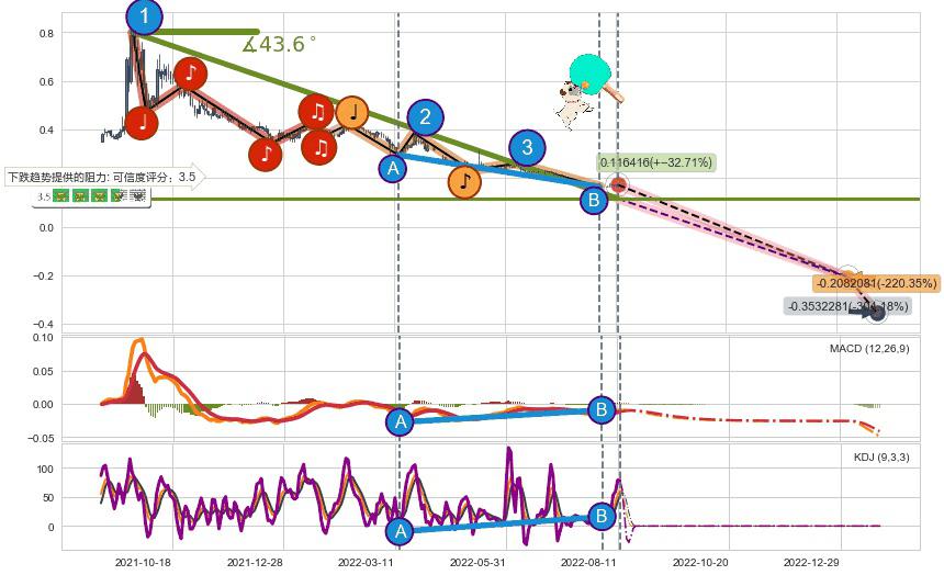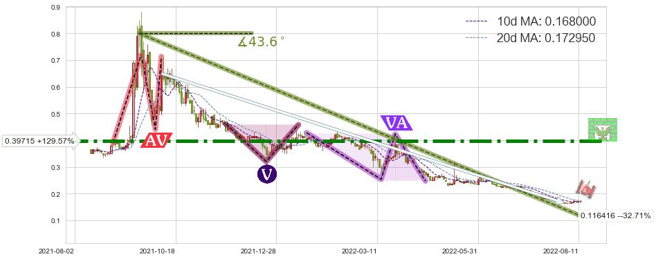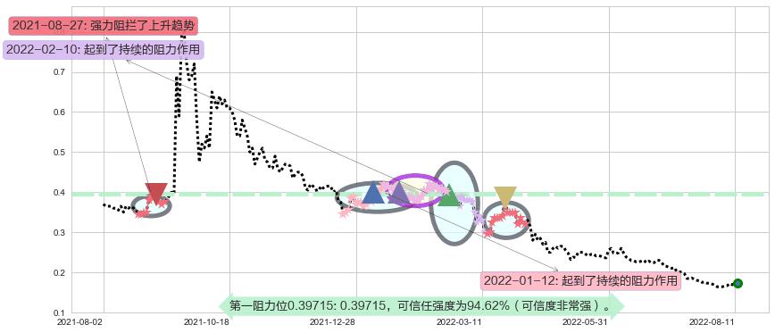 ♘ 阻力价格位0.39715,可信任强度94.62%,距离最后交易2022-08-12形成的收盘价格0.173000相差 +129.57%