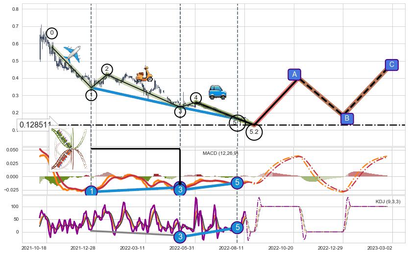 ➣ 5.1: 预测当前第5浪位置(2022-08-02, 0.164000),仍然有下跌空间