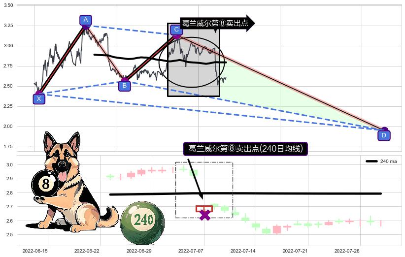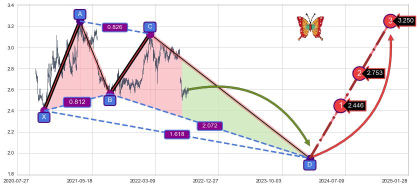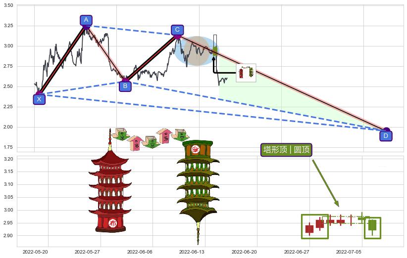 ➣ D点拟合预测价格1.9489,距离最后交易收盘价格2.600相差 -25.04%