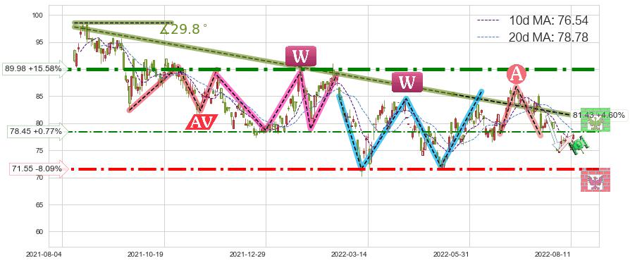 ➢ 2022-07-21到达第❶价格目标位置79.20