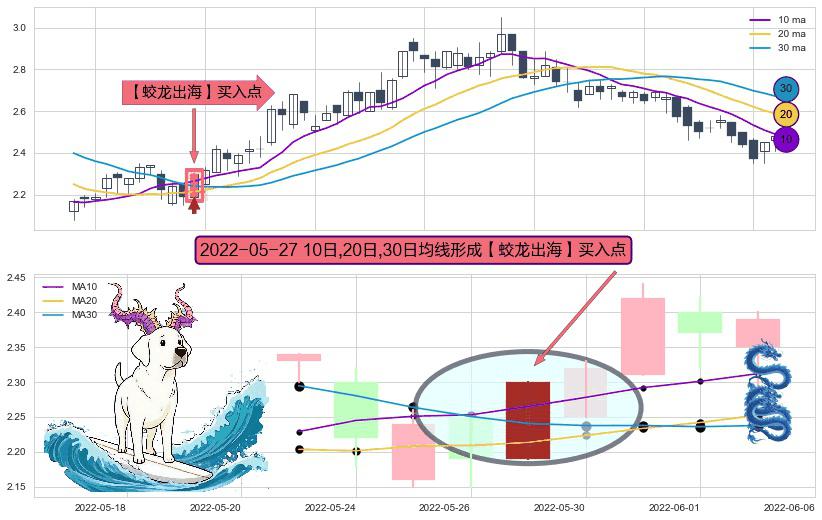 形态多维评估: ⚀ 2022-05-27日显现 10日-20日-30日均线 【蛟龙出海】买入点 看多信号,后市看涨,买入