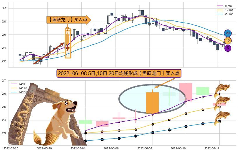 形态多维评估: ⚀ 2022-06-08日显现 5日-10日-20日均线 【鱼跃龙门】买入点 看多信号,后市看涨,买入