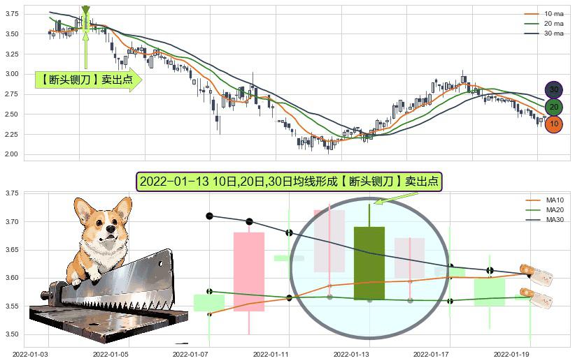 形态多维评估: ⚀ 2022-01-13日显现 10日-20日-30日均线 【断头铡刀】卖出点 看空信号,后市看跌,卖出