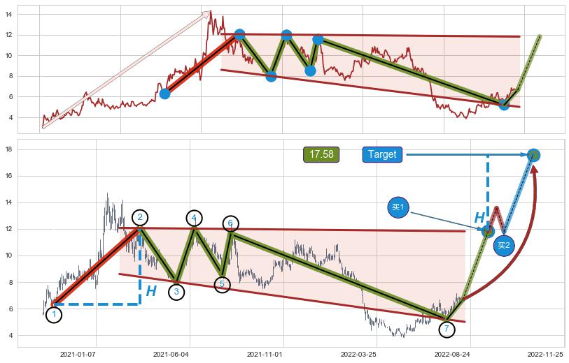 ➣ 最小中继整理涨幅→𝐇: 5.76 (𝐇旗杆的长度:旗杆起点→顶点)