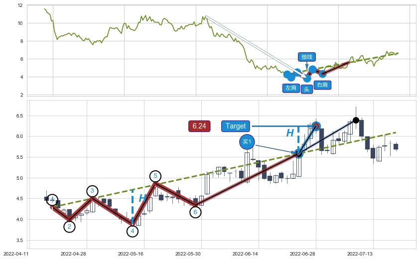 ➢ 【买1】: 激进型 买点 →(2022-06-23: 5.58 )形成突破头肩底【反转】形态