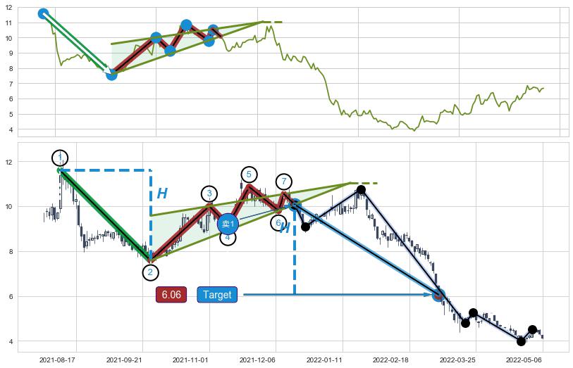 ➣ AI预测: 假定反转启动后, 第❸目标位置(2022-12-21, 6.85)