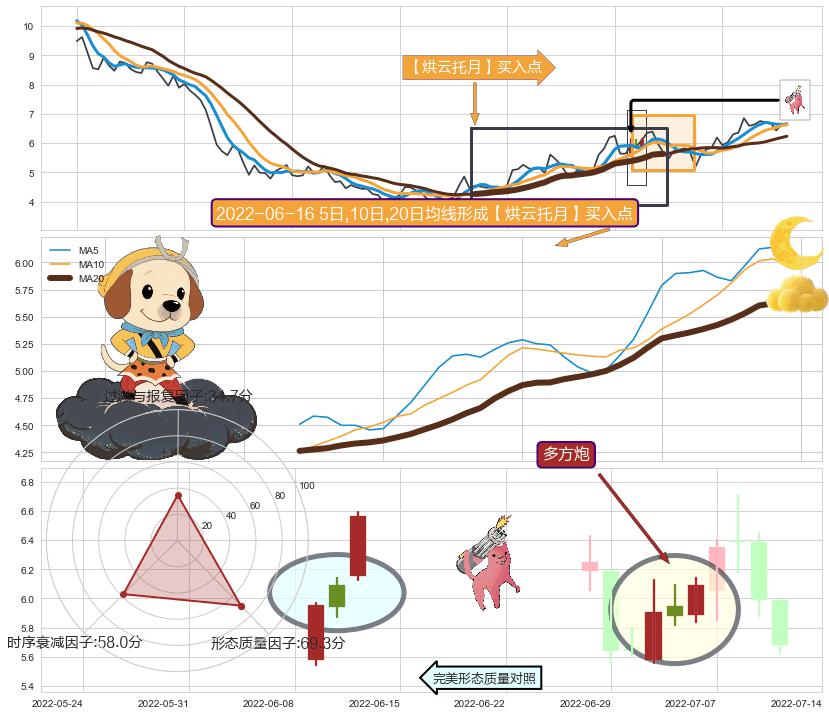 | 4 🅚:两红夹一黑 ➕ 🎢:【蛟龙出海】买入点均线组合买入点信号形成后,猜想后续阻力突破,后市持续上涨 ☞ 看多信号 ⇥ 【均线】交织【🅚线】⇥ 综合量化分数: 52 | > |