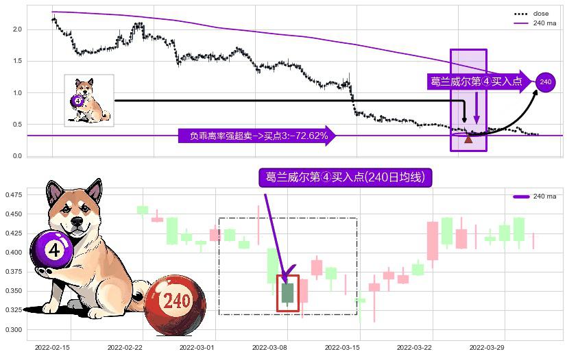 ⚀ 2022-03-08-日显现 葛兰威尔均线 240日均线 第④买入点 下降趋势均值回复的短线反弹信号,后市看涨,买进信号