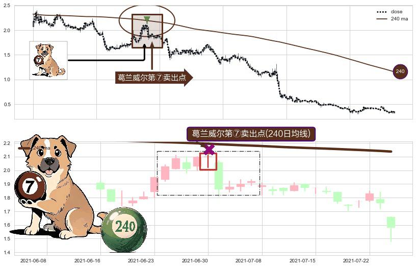 ⚀ 2021-06-30-日显现 葛兰威尔均线 240日均线 第⑦卖出点 下降趋势的中继信号,后市看跌,卖出信号