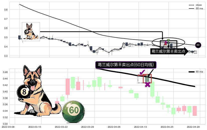 ⚀ 2022-04-13-日显现 葛兰威尔均线 60日均线 第⑧卖出点 下降趋势的中继信号,后市看跌,卖出信号
