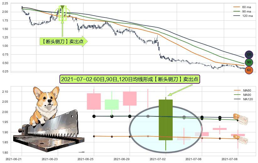 ⚀ 2021-07-02日显现 60日-90日-120日均线 【断头铡刀】卖出点 看空信号,后市看跌,卖出