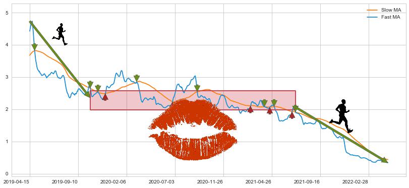 2021-07-07至2022-04-29 慢线与快线呈空头排列, 慢线与快线接触少,无缠绕
