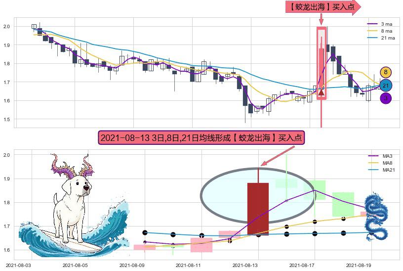⚀ 2021-08-13日显现 3日-8日-21日均线 【蛟龙出海】买入点 看多信号,后市看涨,买入
