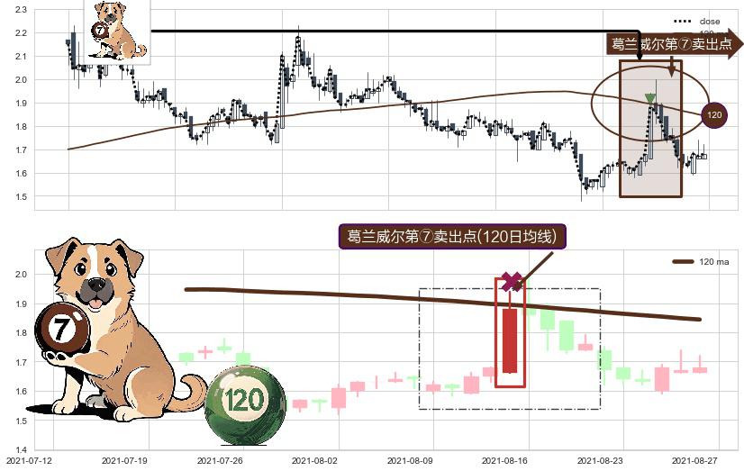 ⚀ 2021-08-13-日显现 葛兰威尔均线 120日均线 第⑦卖出点 下降趋势的中继信号,后市看跌,卖出信号