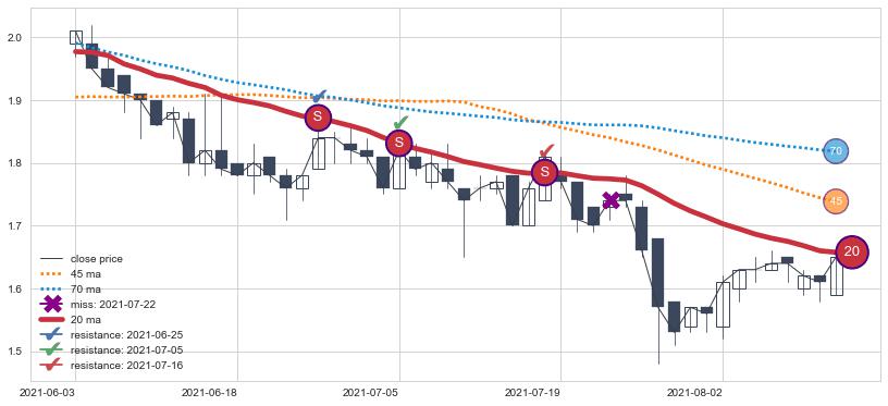 ⚂ 2021-08-13-日均线向上突破,2021-08-17-日重新下穿均线破位,均线阻力再次生效