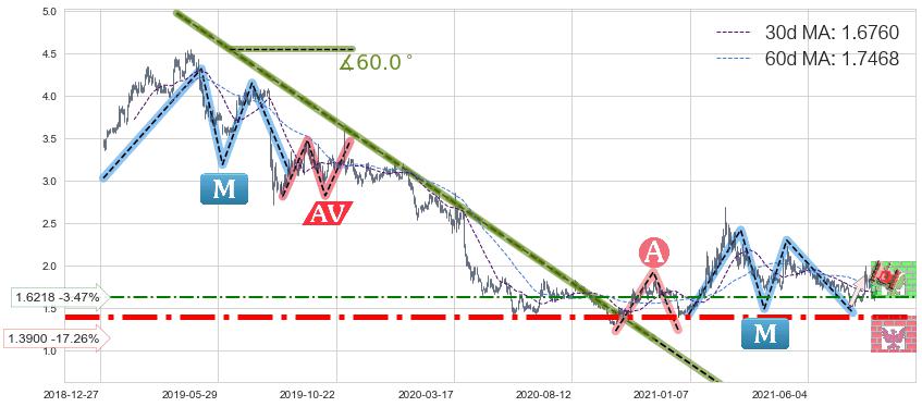 ♞ 30日均线:1.6760,60日均线:1.7468→ 快线<慢线