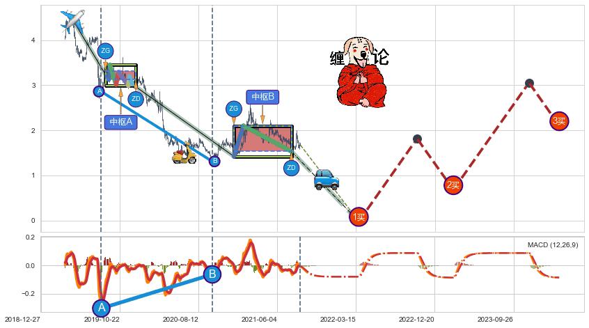 ➢ 【中枢B】:2020-12-22-2021-07-28,中枢由3笔构成,共147交易日, ZG=2.100, ZD=1.5300