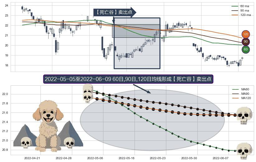 ⚀ 2022-05-06-日至2022-06-09-日显现 60日-90日-120日均线 【死亡谷】卖出点 看空信号,后市看跌,卖出