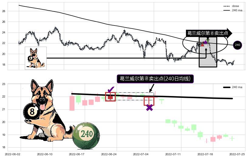 ⚀ 2022-07-04-日显现 葛兰威尔均线 240日均线 第⑧卖出点 下降趋势的中继信号,后市看跌,卖出信号