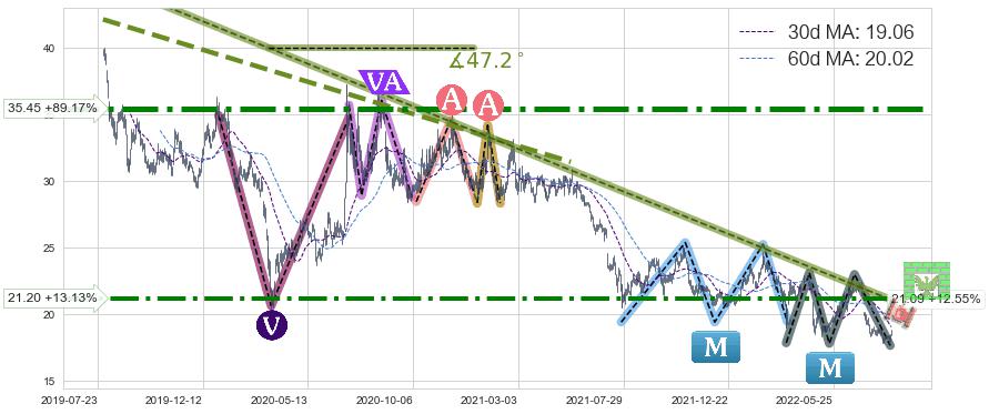 ♘ 阻力价格位35.45,可信任强度99.50%,距离最后交易2022-08-12形成的收盘价格18.74相差 +89.17%