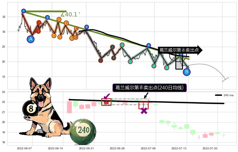 从2021-10-22至2022-08-12,共包含199个交易日,阶段股价下跌-23.87%,阶段股价变动位移路程比: 1 : 11,下跌趋势角度: 35.7