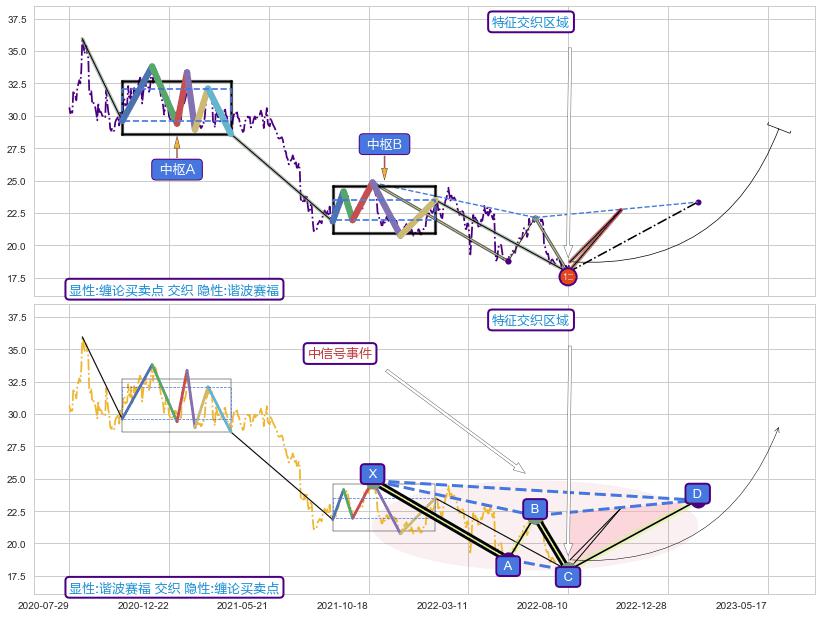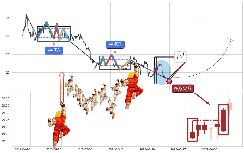 ➣ 【中枢B】:2021-08-23-2022-01-20,中枢由6笔构成,共104交易日, ZG=23.50, ZD=21.95