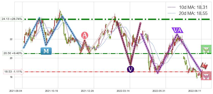 ♘ 阻力价格位20.50,可信任强度68.30%,距离最后交易2022-08-12形成的收盘价格18.74相差 +9.40%