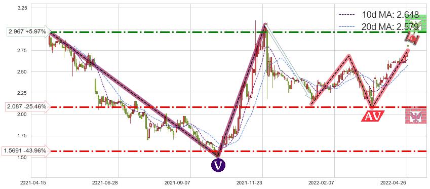 ➣ AI预测: 假定反转如期而至,第❷价格目标位置(2022-05-27, 2.374)