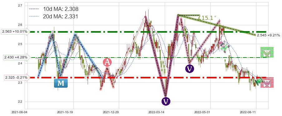 ♘ 阻力价格位2.563,可信任强度94.88%,距离最后交易2022-08-12形成的收盘价格2.330相差 +10.01%